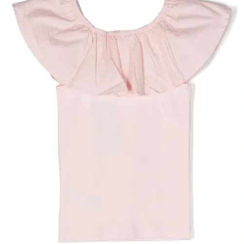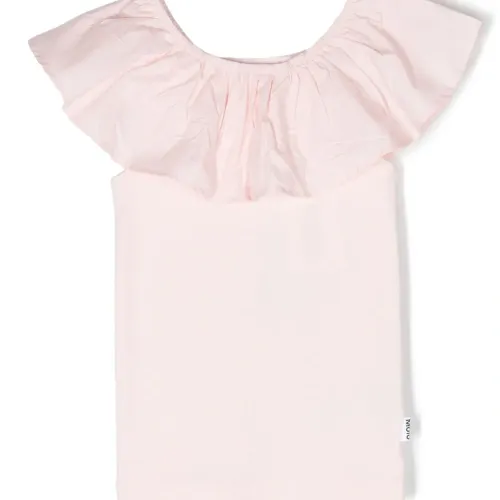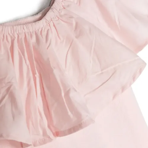 Светло-розовый, стрейчевый органический хлопок, поплин, нашивка с логотипом сбоку, воротник с оборками, без рукавов и прямой подол. Узнать больше о том, какие товары получают отметку «Ответственный выбор», можно из материала «Как мы оцениваем экологичность и этичность».