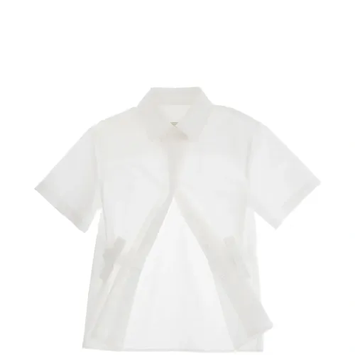 белая рубашка с застёжкой на пуговицы, короткими рукавами и классическим воротником