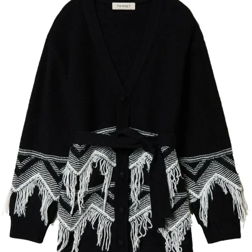 кардиган с бахромой и поясом