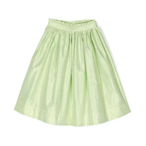 Зеленый, белый, принт в клетку гингем, мерцающее покрытие, дизайн со сборками, пышная юбка и эластичный пояс.