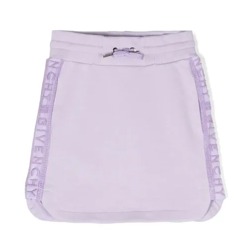 Лиловый, смесовый хлопок, вышитый логотип сбоку, кулиска на талии, два вшитых кармана по бокам и закругленный подол.