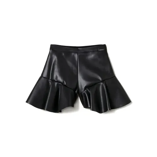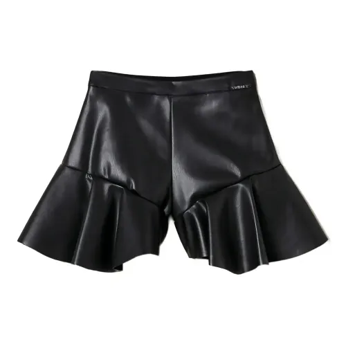 Шорты из искусственной кожи с оборкой по подолу