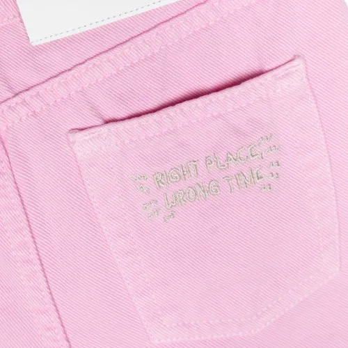 Вышитый логотип спереди, петли для ремня, застежка на молнии и пуговице спереди и пять карманов.