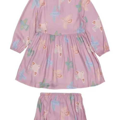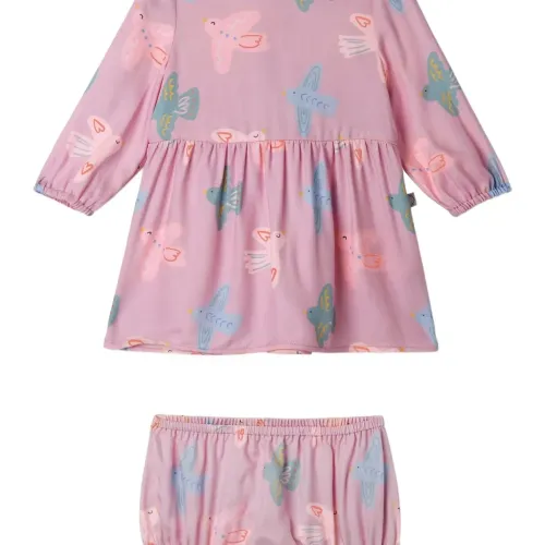 Платье с принтом птиц и сборкой