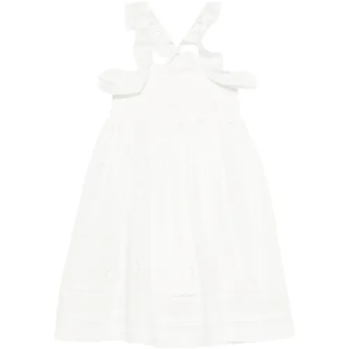 белый с оборчатой отделкой, вышивкой и присборенными деталями