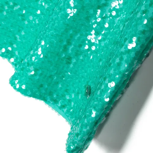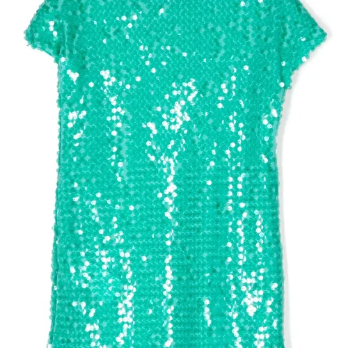 Сине-зеленый, украшение из пайеток, короткие рукава, круглый вырез и модель без застежки.
