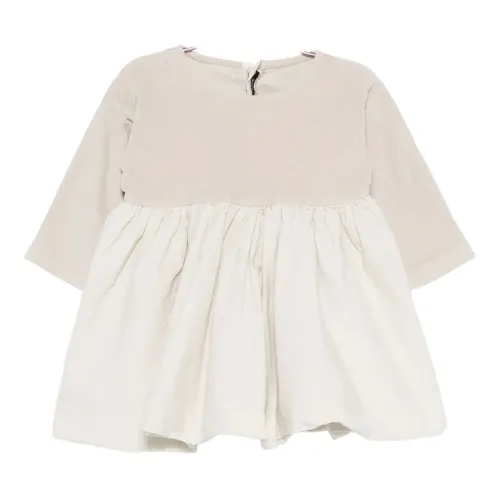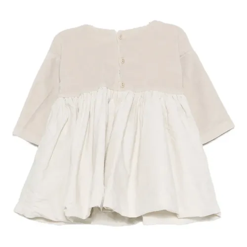 бежевый сборка длинные рукава круглый вырез застёжка на пуговицу сзади