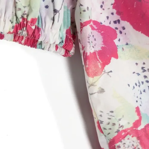 Разноцветный, асимметричная форма, сплошной цветочный принт, круглый вырез, короткие рукава и асимметричный подол. . Узнать больше о том, какие товары получают отметку «Ответственный выбор», можно из материала «Как мы оцениваем экологичность и этичность».
