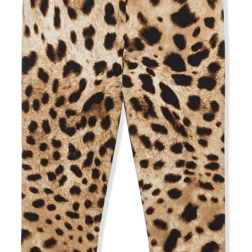 Ткань джерси, сплошной леопардовый принт и эластичный пояс.