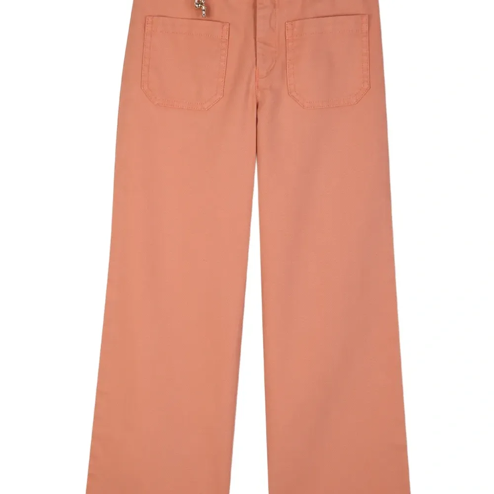 розовые широкие брюки с накладными карманами, декоративным элементом, шлевками для пояса и застежкой на пуговицу