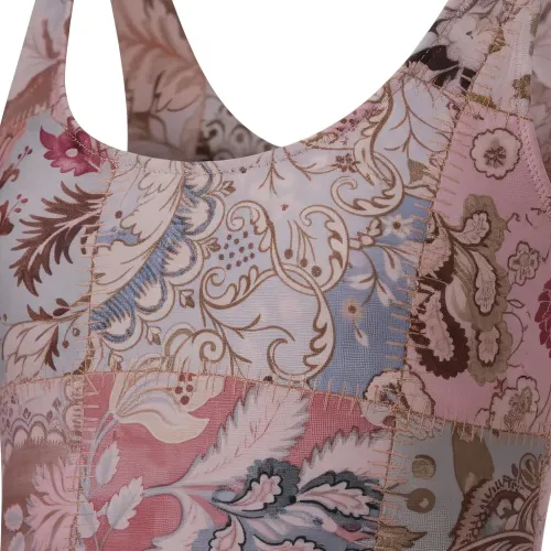 майка с принтом орхидей, завязками на плечах, в стиле пэчворк и круглым вырезом