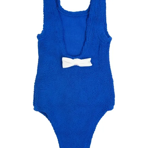 королевский синий, текстура жатки, бант; Пожалуйста, примерьте купальник поверх собственного белья.