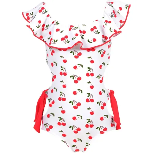 Слитный купальник Jenny с оборками и вишнёвым принтом