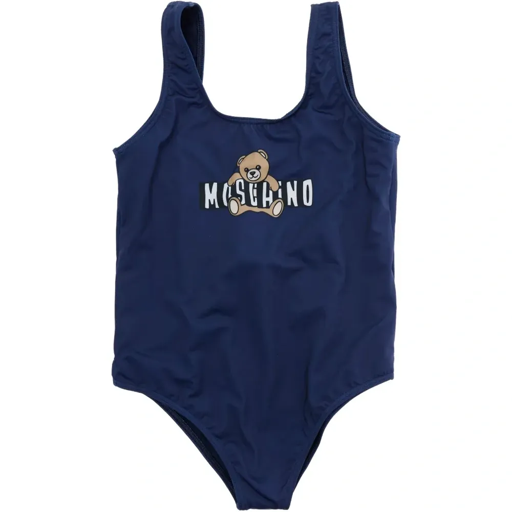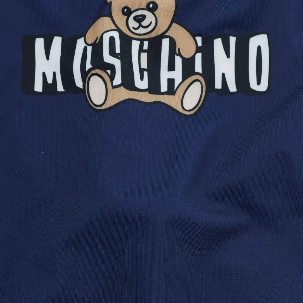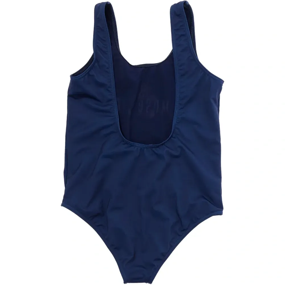 синий купальник с принтом логотипа и круглым вырезом, без рукавов