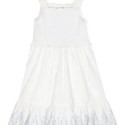 Белый, хлопок, расклешенный крой, вышитые края, эластичные вставки, квадратный вырез, без рукавов и длина миди.