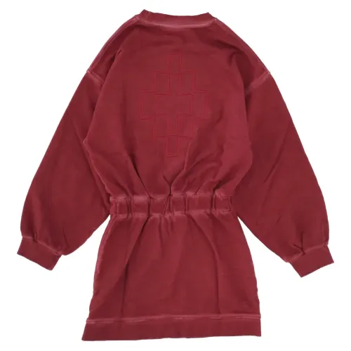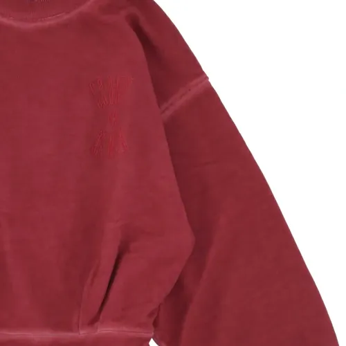 красный свитшот с логотипом, круглым вырезом, длинными рукавами, складками и ребристой отделкой