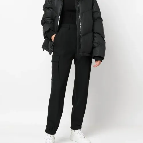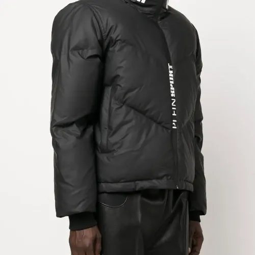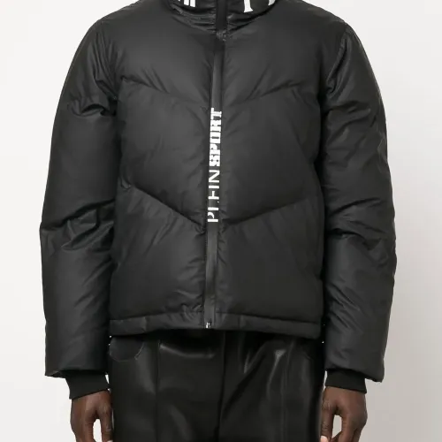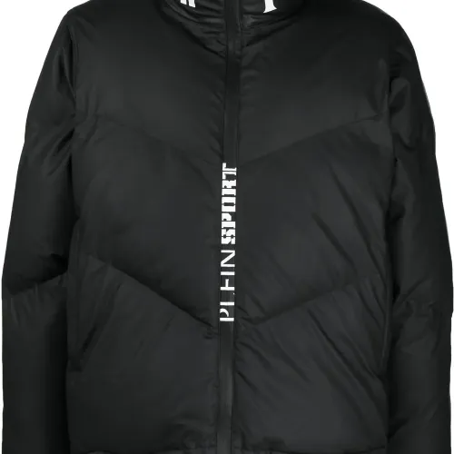 Черный, логотип спереди, воротник-труба, длинные рукава, застежка на молнии спереди и дутый материал.