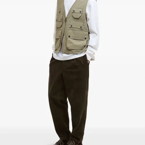 британский хаки зеленый множество карманов застежка-молния спереди V-образный вырез регулируемые лямки фирменная нашивка