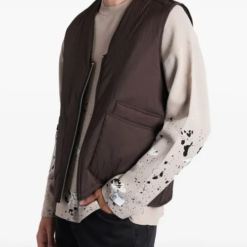коричневый, застежка-молния, нагрудный карман, без рукавов, прямой край, тональная строчка