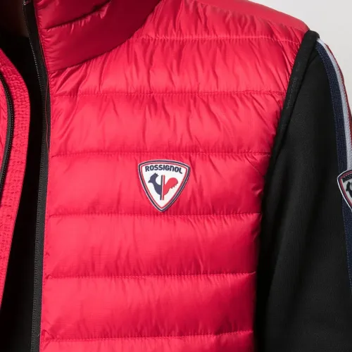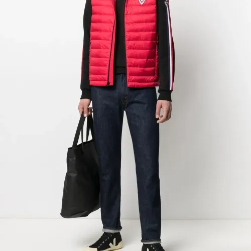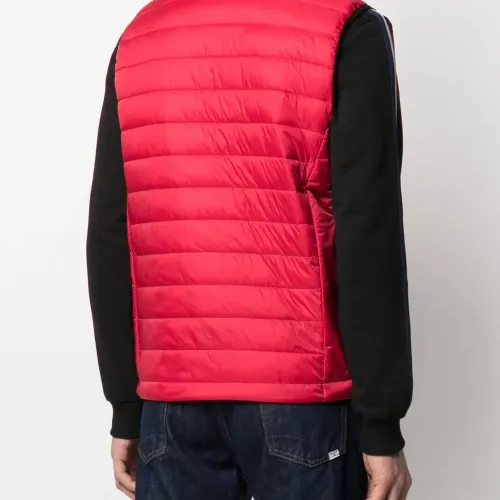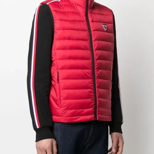Дутый материал, без рукавов, застежка на молнии спереди, нашивка с логотипом спереди и два кармана на молнии. Цвет: красный.