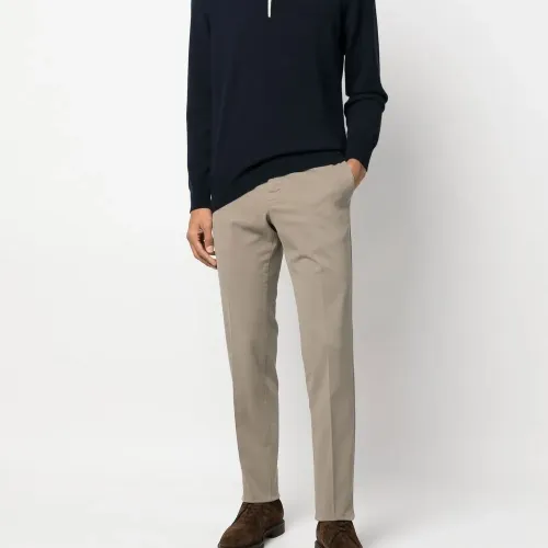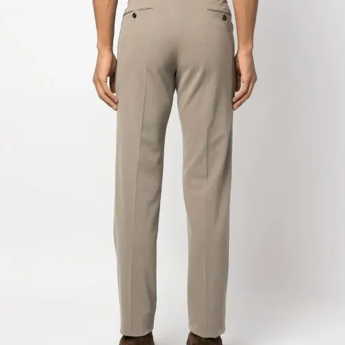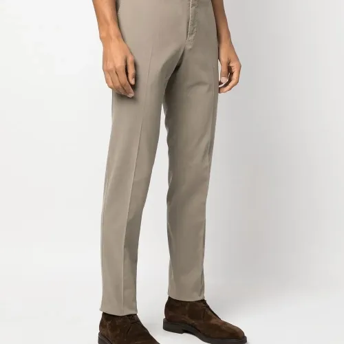 Бежевый, эластичный материал, средняя посадка, узкий крой, петли для ремня, смещенная застежка спереди, два прорезных кармана по бокам и два прорезных кармана на пуговицах сзади. Ответственный выбор: Этот товар как минимум на 50% состоит из материалов, которые признаны более безопасными для окружающей среды или сертифицированы независимыми организациями.