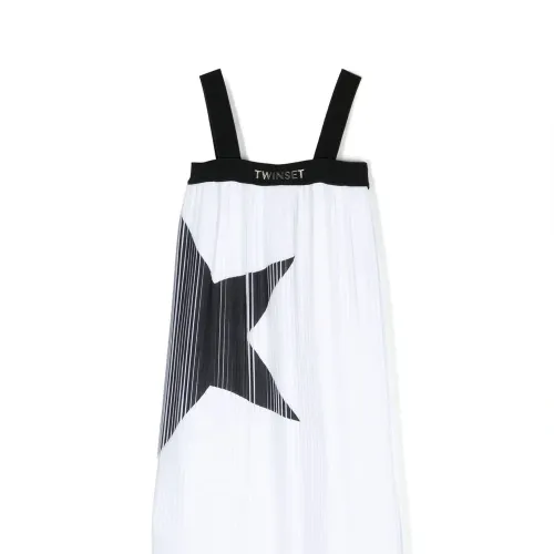 Белый, хлопок, плиссированная модель, принт с изображением звезд, квадратный вырез и без рукавов.