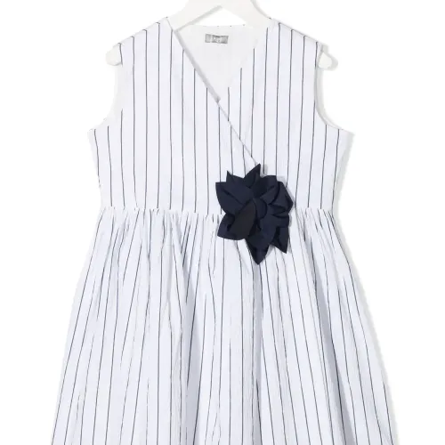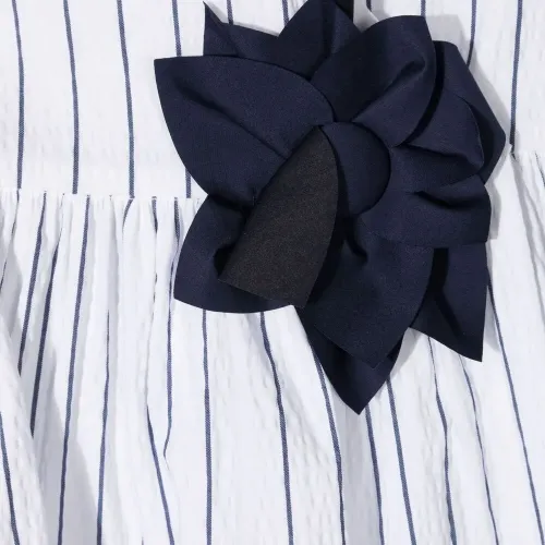 Платье в тонкую полоску с цветочной аппликацией