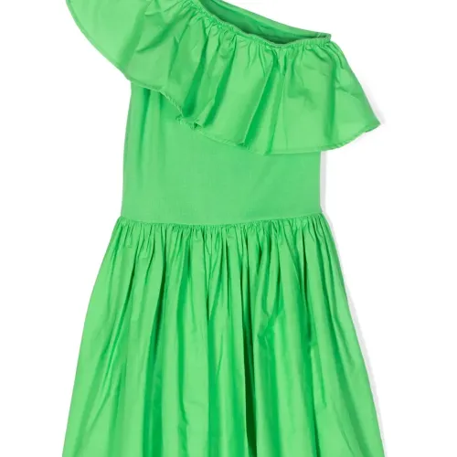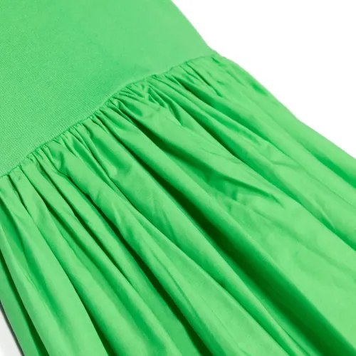 Расцветка Grass Green, органический хлопок, вставки с оборками, складки, модель на одном плече, без рукавов и прямой подол. Узнать больше о том, какие товары получают отметку «Ответственный выбор», можно из материала «Как мы оцениваем экологичность и этичность».