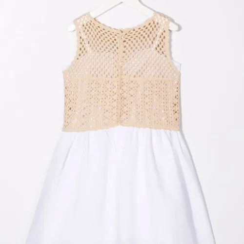 Модель в технике кроше, без рукавов и расклешенный крой. Цвет: белый. .