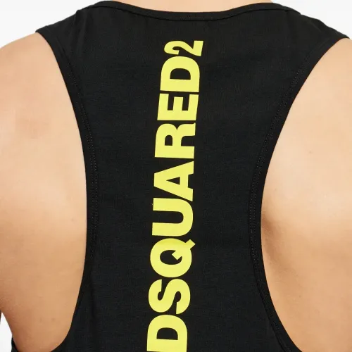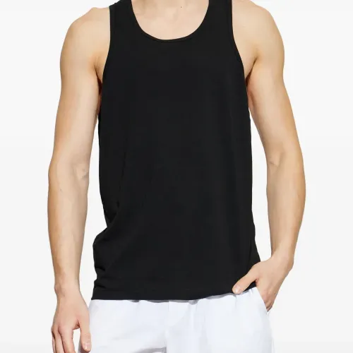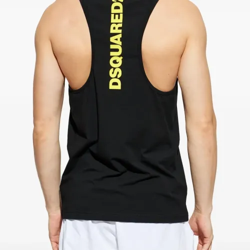черный безрукавный топ с круглым вырезом и логотипом на спине