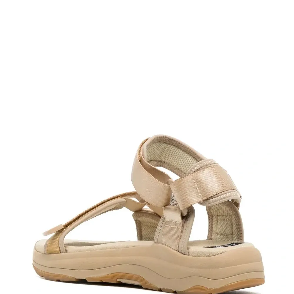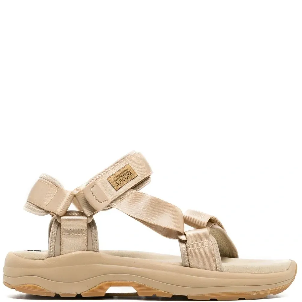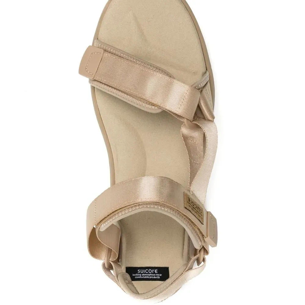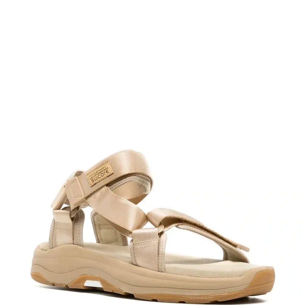 Бежевый, нашивка с логотипом сбоку, застежка на липучке, открытый носок, резиновая подошва и подошва Vibram®.