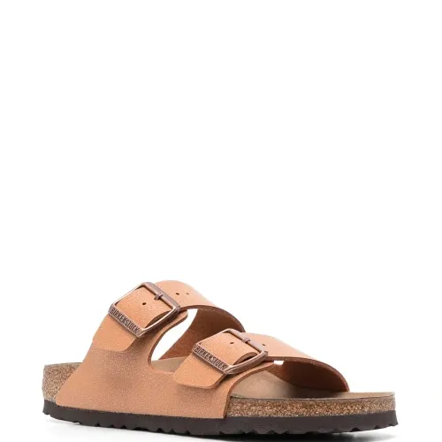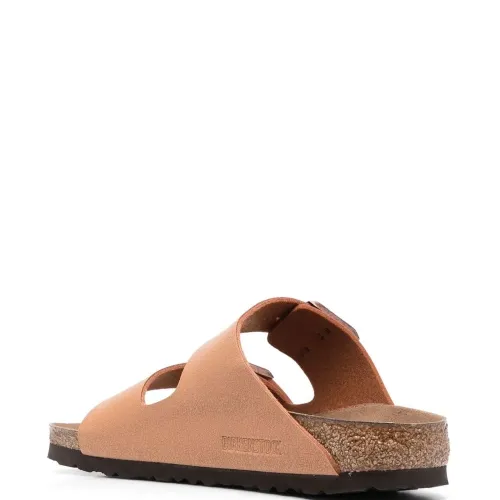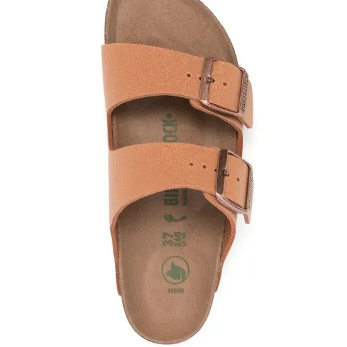 Коричневый, искусственная кожа, открытый носок, застежка с двумя пряжками, формованная стелька и резиновая подошва.