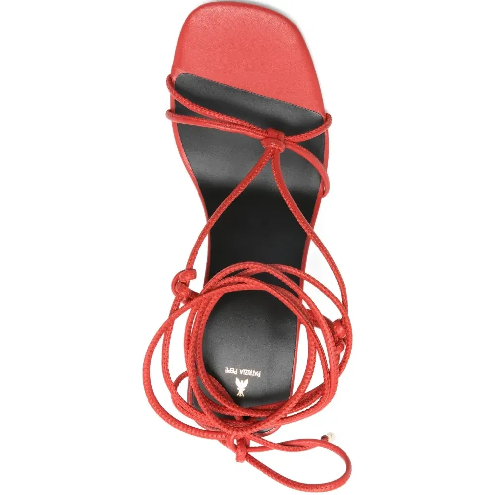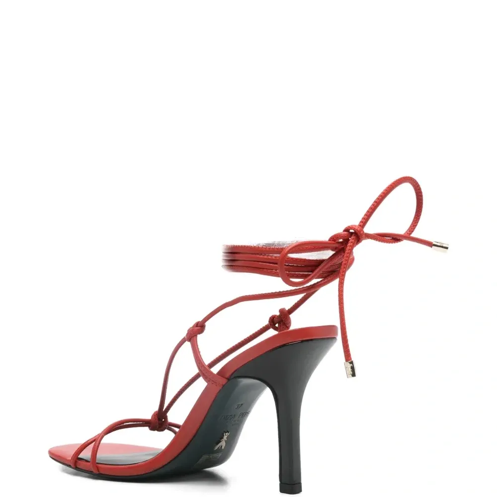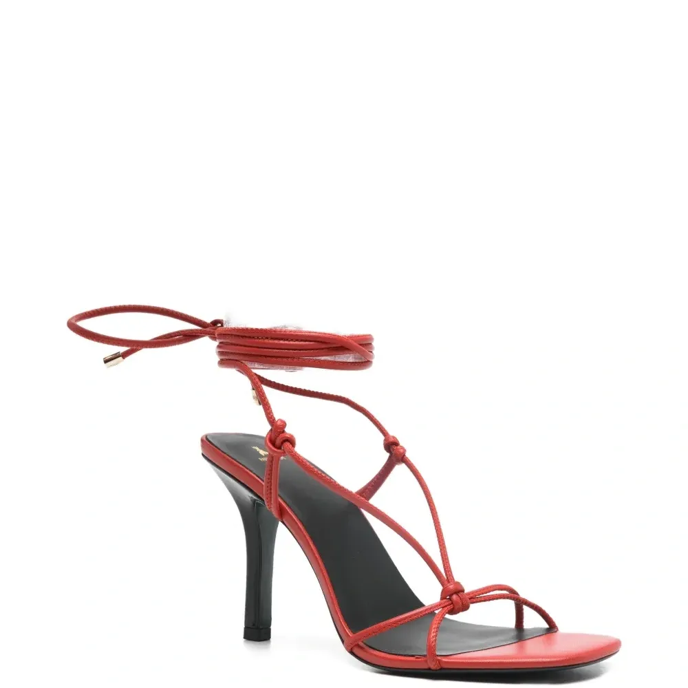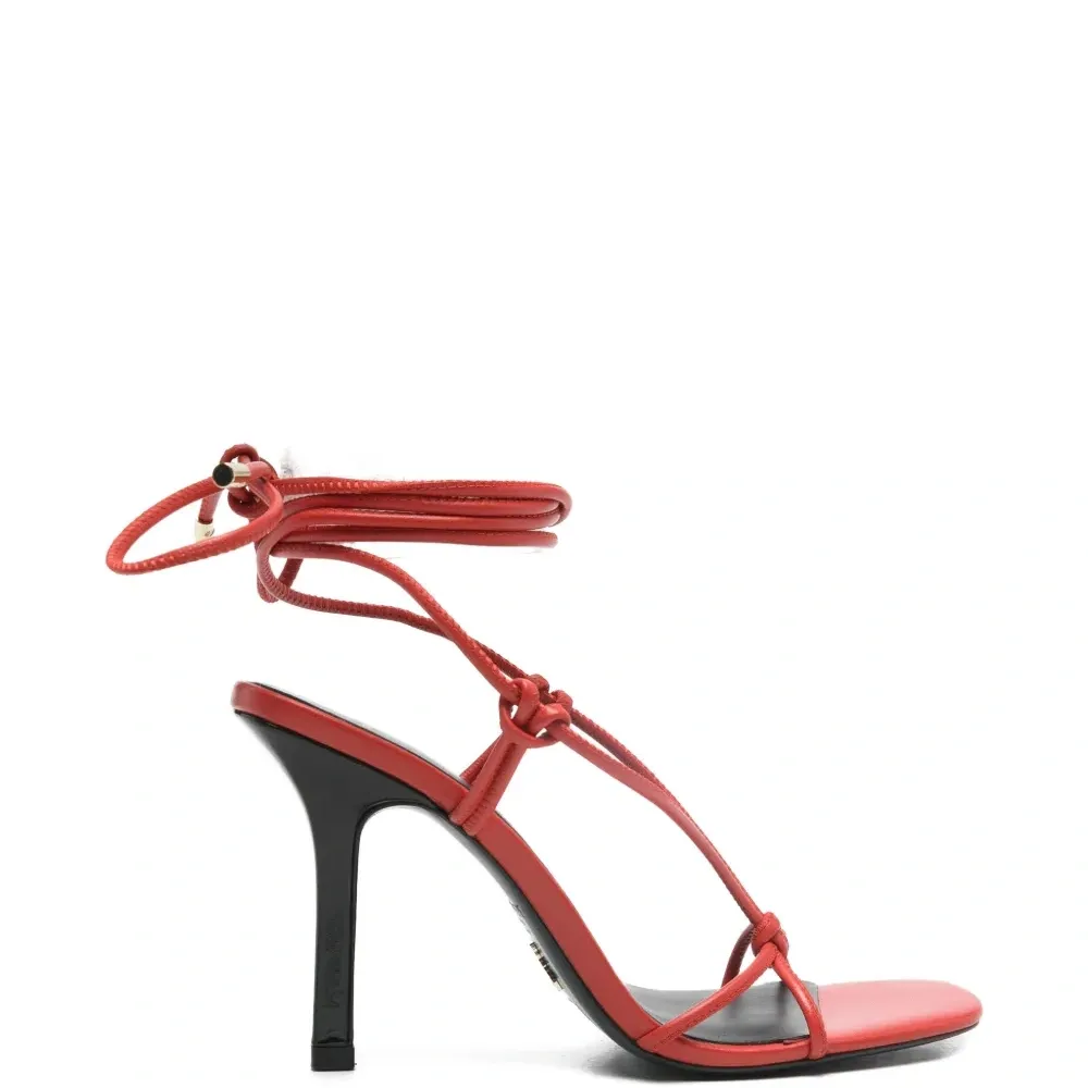 красные туфли на высоком каблуке с завязками. К изделию прилагается защитный чехол.