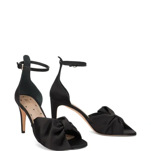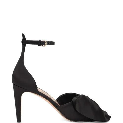 чёрные туфли с бантом, застёжкой на щиколотке, пряжкой и заострённым носком