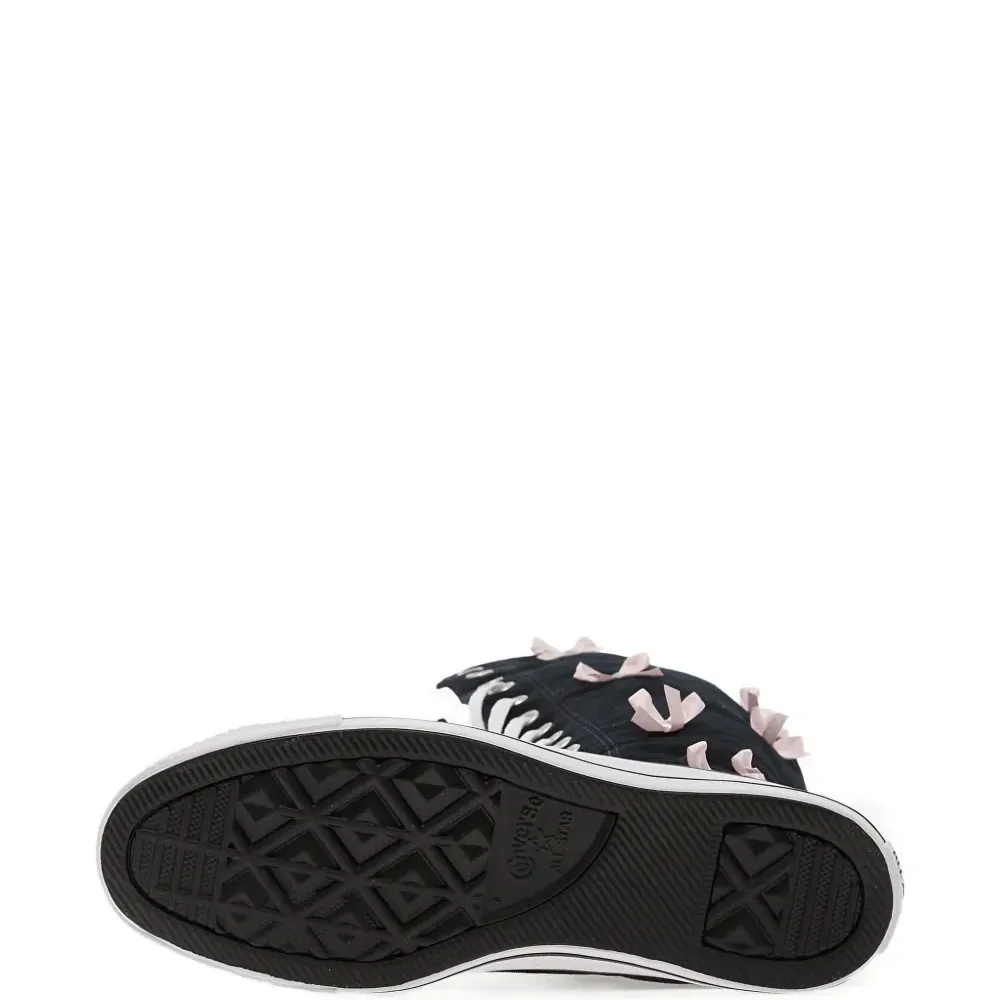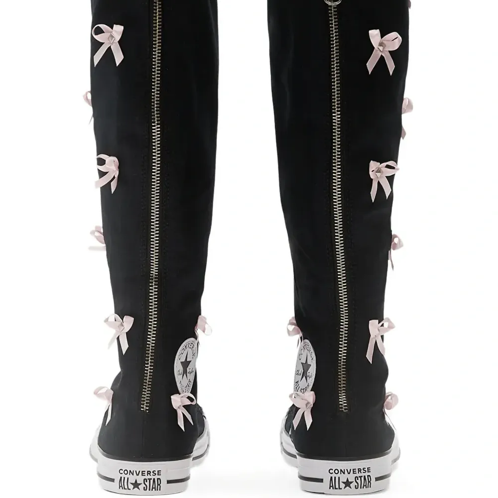 чёрный бант, шнуровка спереди, застёжка-молния сзади, высота до колена, резиновая подошва