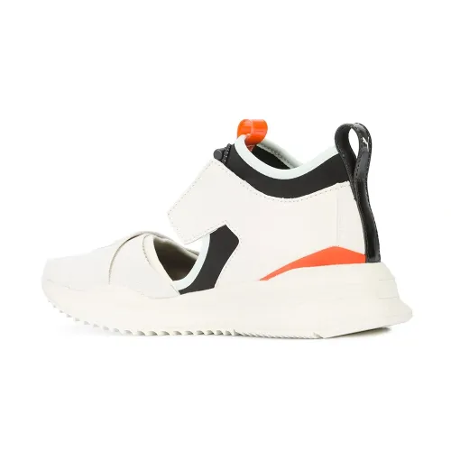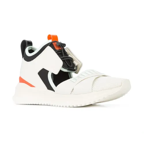 Белые с красным и черным кожаные кроссовки на шнуровке с вырезом от Fenty X Puma.