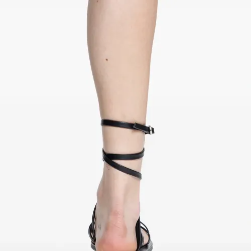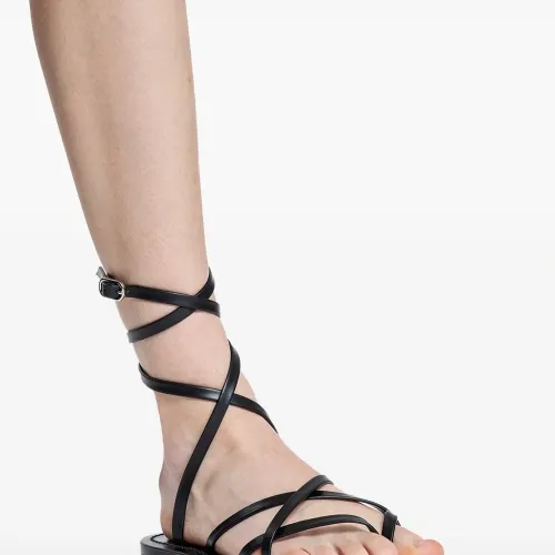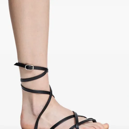 черные обвивающие ремешки, застежка-пряжка, плоская подошва, ремешки через стопу