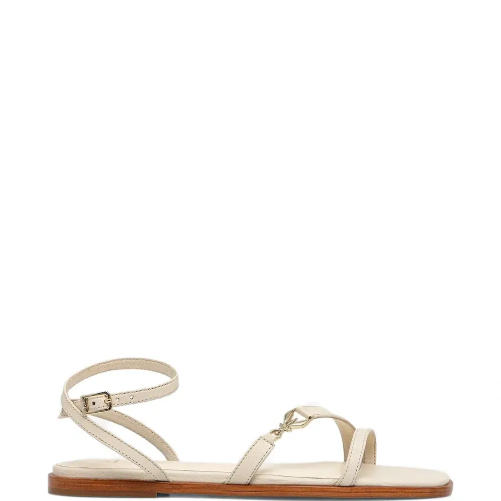 белая плоская подошва, ремешок на щиколотке, застежка-пряжка, однотонная строчка