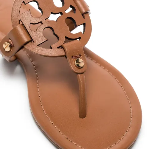 Стелька с логотипом, Т-образный ремешок, модель без застежки и плоская резиновая подошва. Цвет: коричневый.