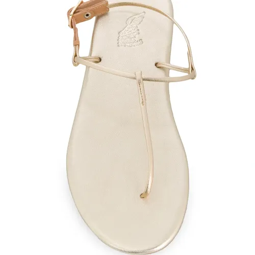 Сандалии Katerina на плоской подошве от Ancient Greek Sandals. Закругленный носок, Т-образный ремешок, ремешок на щиколотке и пряжка сбоку, фирменная стелька и плоская резиновая подошва. POSITIVELY CONSCIOUS: Ancient Greek Sandals scores 3 out 5 by independent ethical brand rating agency Good On You. It manufactures locally to reduce its carbon footprint, uses low impact non-toxic dyes and visits suppliers regularly in its supply chain..