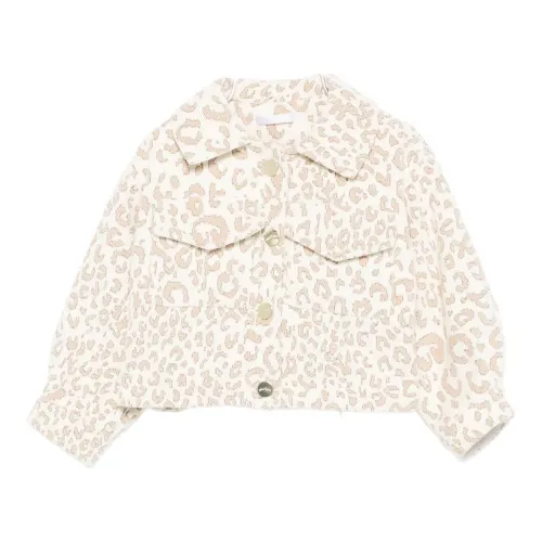 Off-White леопардовый принт, застежка на пуговицы, отложной воротник, длинные рукава, накладные карманы