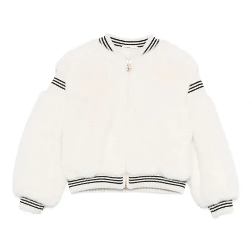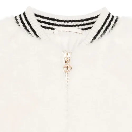 молочный цвет застежка-молния спереди рубчатые манжеты полосатые детали бейзбольный воротник