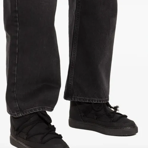 черный натуральный текстильный верх, шнурки-веревки, плоская подошва, высокий дизайн, мягкий воротник