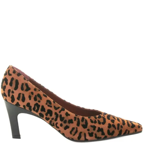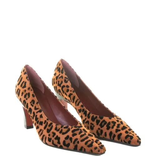 Замшевые туфли на каблуке 70 мм с леопардовым принтом