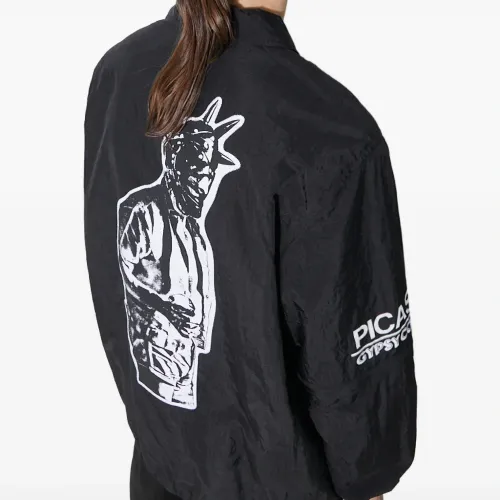 чёрная застёжка на пуговицы, графический принт, логотип с надписью, эластичный пояс, длинные рукава