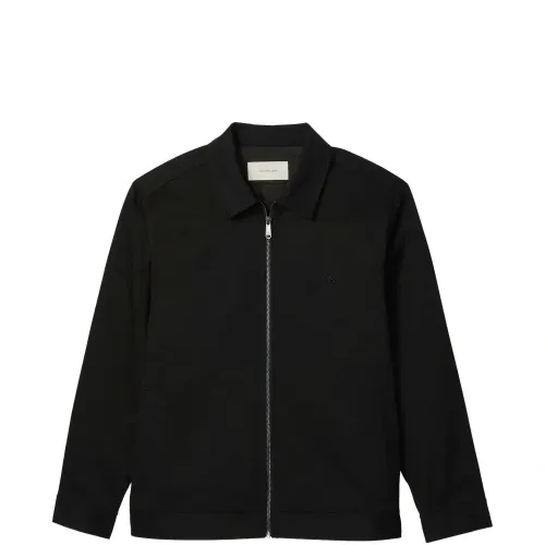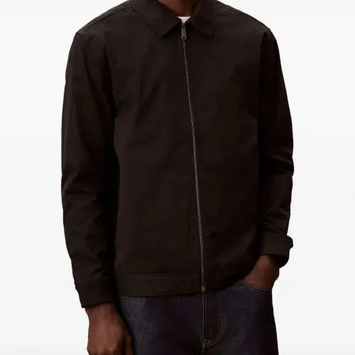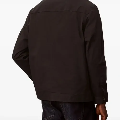 черная застежка-молния, классический воротник, манжеты на пуговицах, вышивка логотипа в тон, застежка на пуговицы сзади