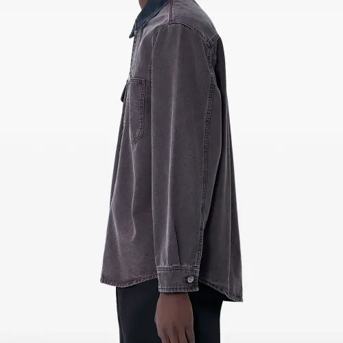 Рубашка-оверчерт с джинсовым воротником и накладными карманами