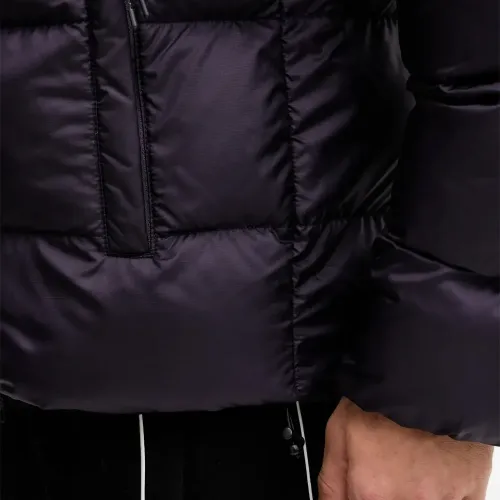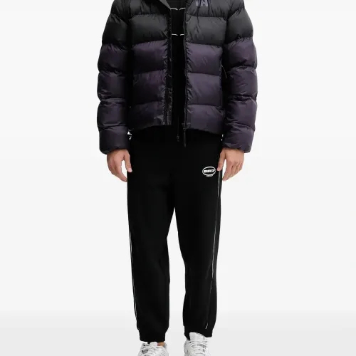 черная стеганая куртка с застежкой-молнией, капюшоном, передним карманом на молнии и логотипом
