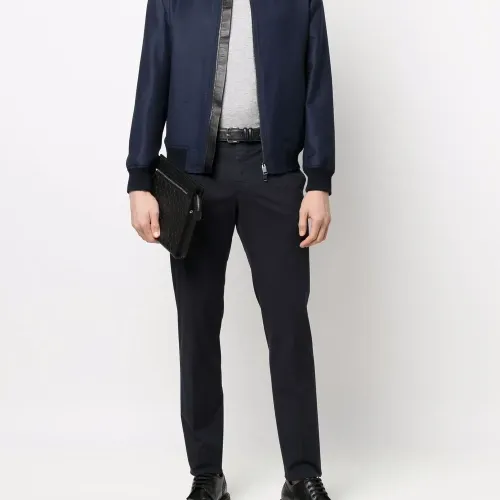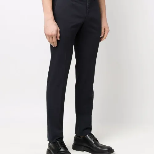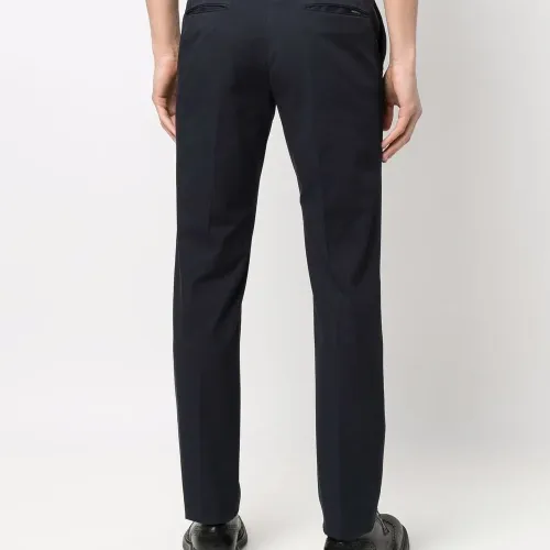 Петли для ремня, застежка на молнию и крючок, два вшитых кармана по бокам, два прорезных кармана сзади, прямой крой и строгий крой.