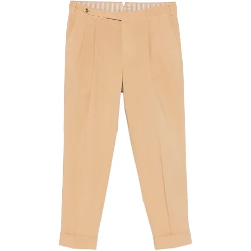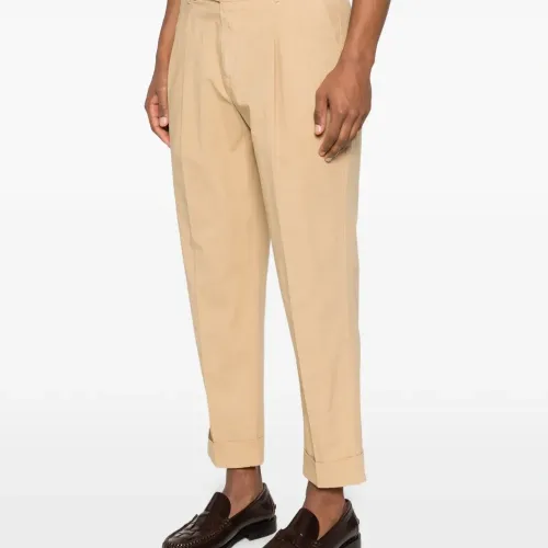 бежевый цвет, плиссированные детали, шлевки для ремня, подвернутый край, прорезные карманы, застежка на пуговицу